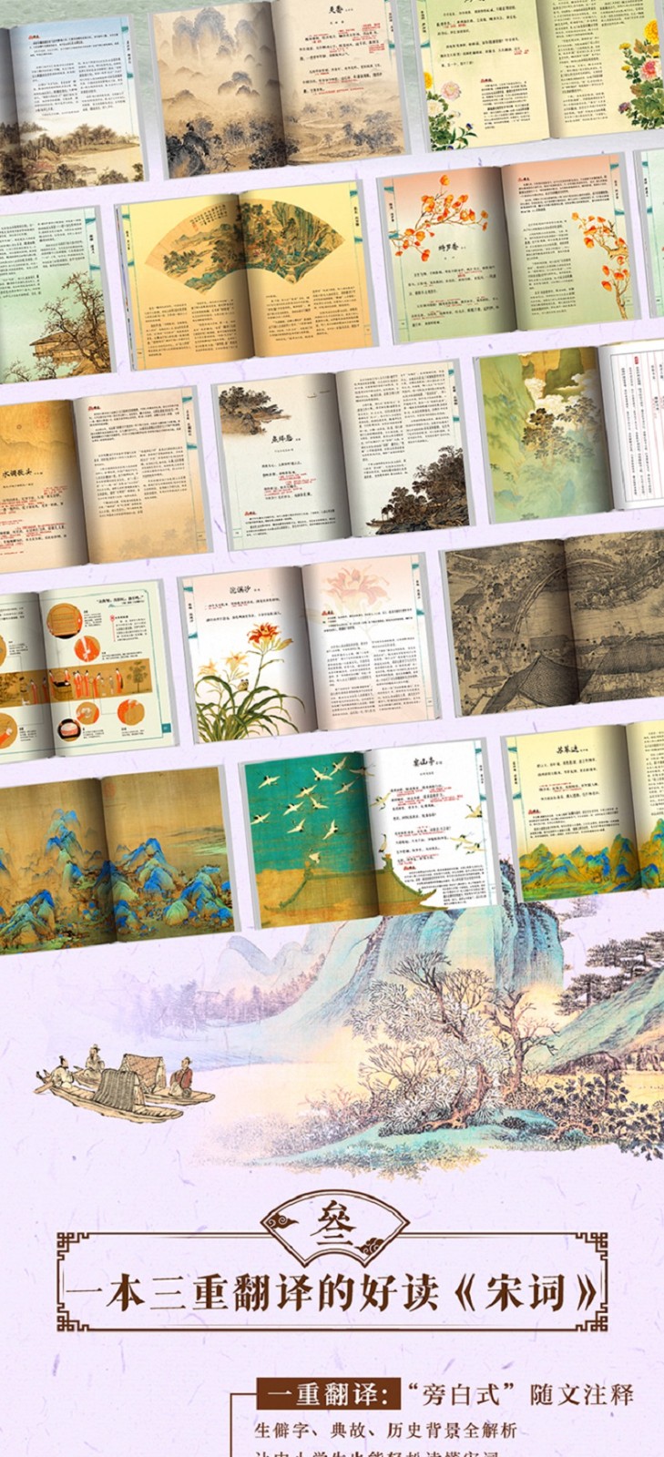 《經典宋詞》全註全譯全彩(共2冊) 全書共800頁 附贈 宋代繪畫集萃+如夢令藏書票+宋詞延展思維導圖