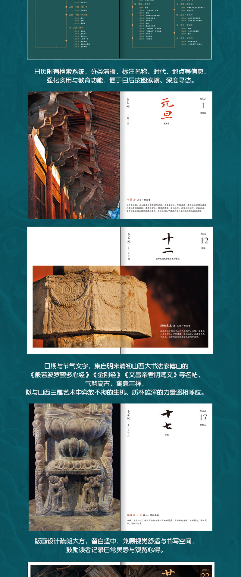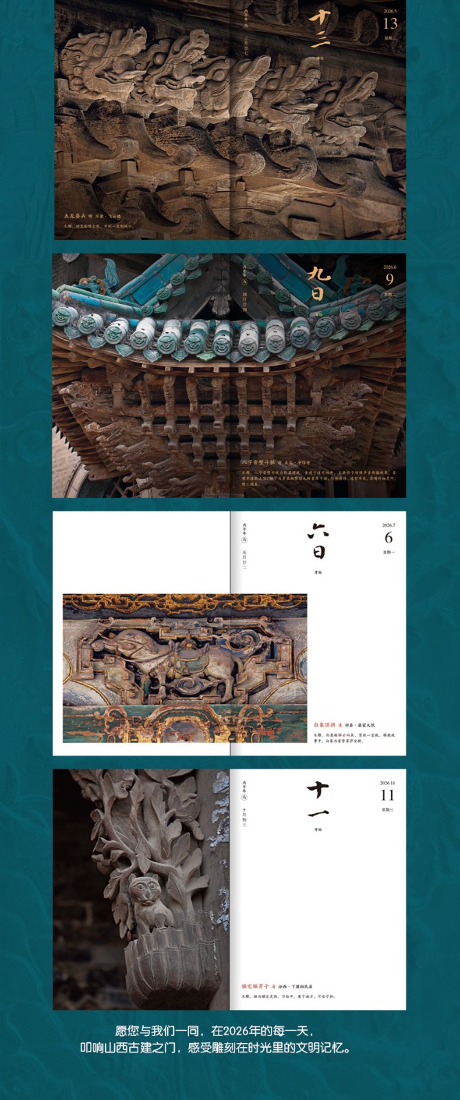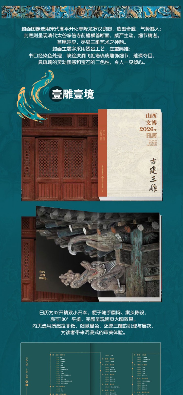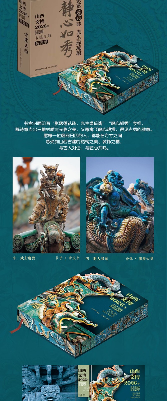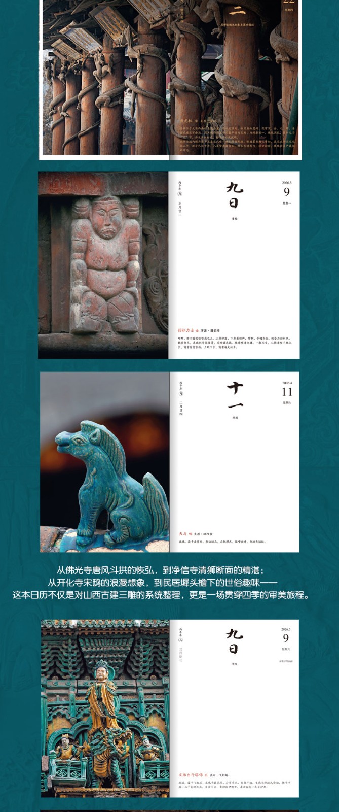 《2026年山西文博日曆 古建三雕》 石雕磚雕木雕 三雕三晉大地文化 全景展現中華文化魅力 建築裝飾藝術史 丙午馬年禮物禮品