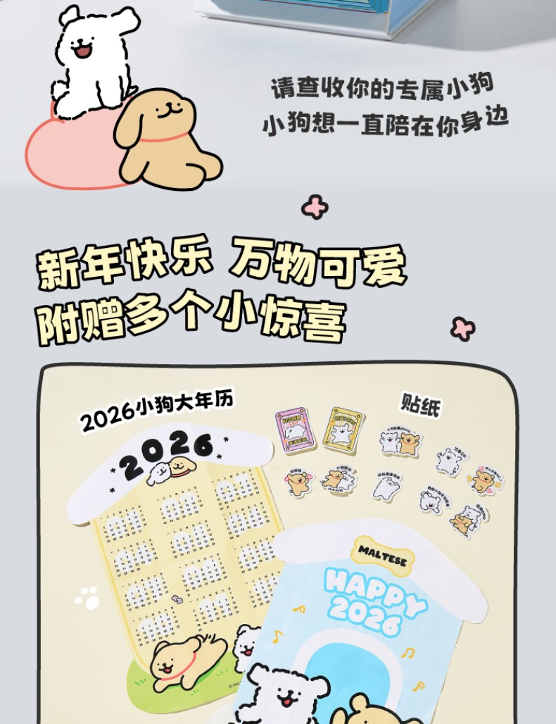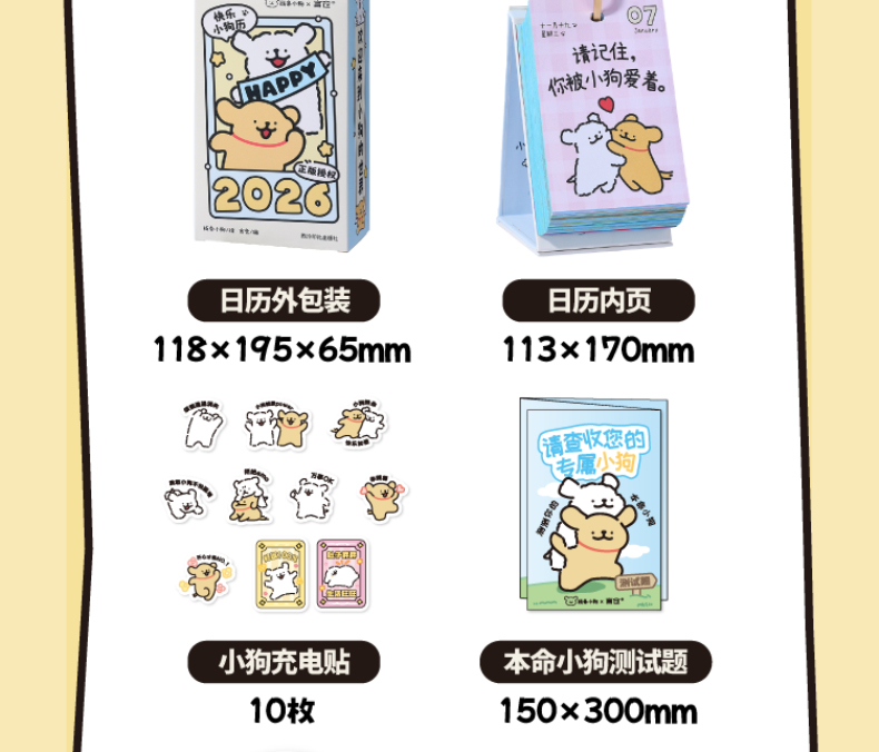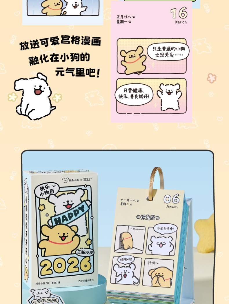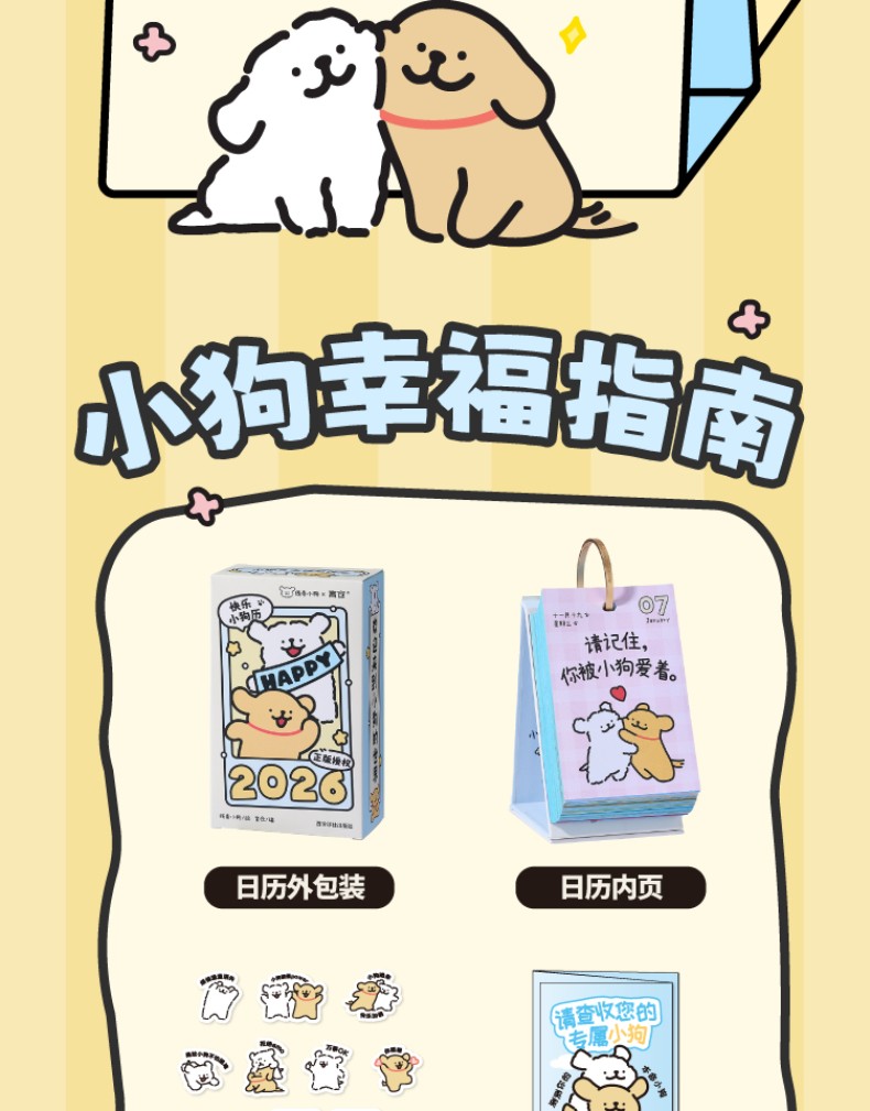 線條小狗2026日曆 快樂小狗桌曆 新年生日禮物