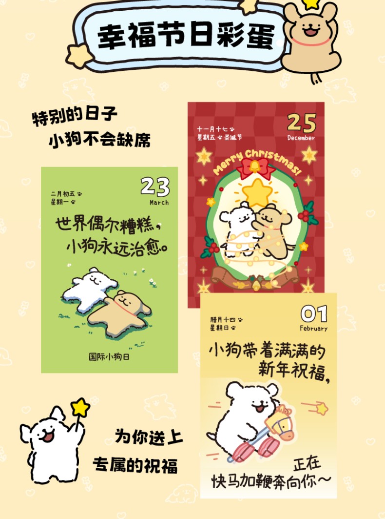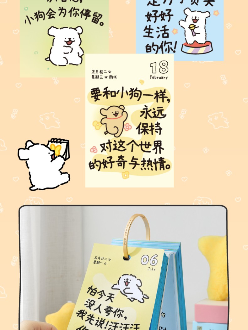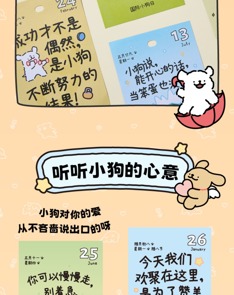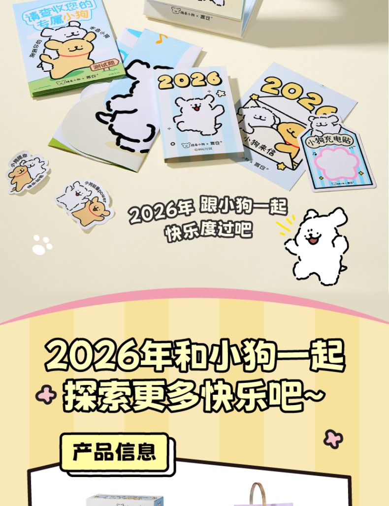 線條小狗2026日曆 快樂小狗桌曆 新年生日禮物
